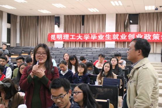接下来于强先生为同学们梳理了中国的创业环境发展历程的五个阶段并结合当今社会情况,着重讲解了“互联网+”时代,大学生如何创业。“互联网+”是李克强总理针对如何创新、创业提出的建议和方向,于强先生为同学们介绍了在当前国家经济增速放缓的状况下,毕业大学生所面对的就业与创业压力以及国家为大学生创业出台的政策,其中重点阐述了在“互联网+”环境下大学生应如何在云南创业,其目的主要是为了让同学们认识到云南缺少创投理念的现状,并了解要想做到与北上广竞争,就要盘活云南资源,创造价值,通过互联网工具或引进外部资源来解决现实需求