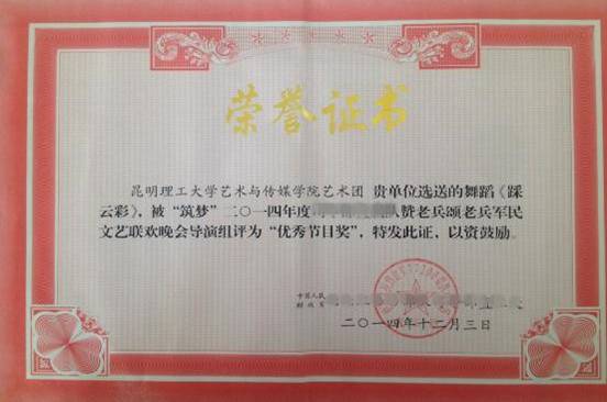 艺术团受邀参加了驻滇某直属队2014年度“筑梦”赞老兵颂老兵军民文艺联欢晚会。