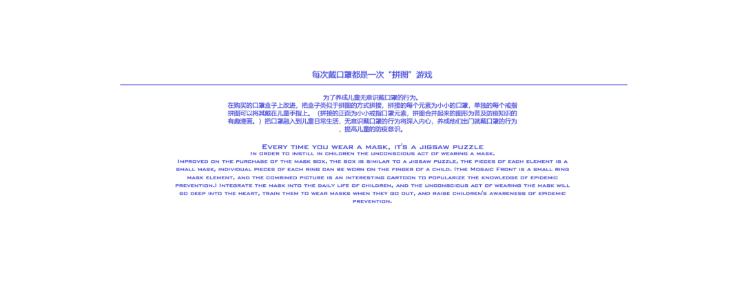 Every time I put on a mask, it is a jigsaw puzzle, which combines the knowledge of epidemic prevention with the nature of children to play, and adds the fun of epidemic prevention to children.