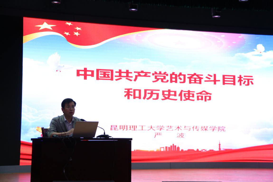 首先,严波副书记以《中国共产党的奋斗目标和历史使命》为题,讲述了党的奋斗目标,党的历史使命,最终目标与现阶段任务的辩证关系,告诫同学始终牢记历史使命,从新起点出发踏上新征程。
