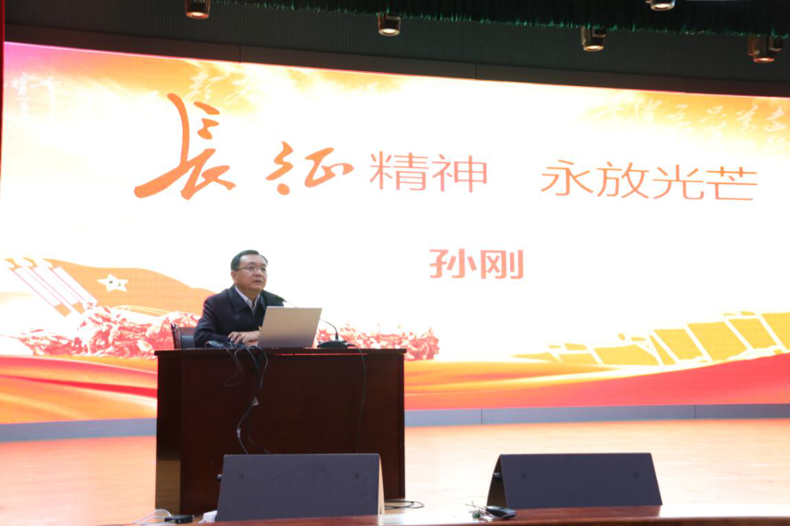接下来,孙刚书记以《长征精神,永放光芒》为题,讲述了红军长征的原因,红军长征的不同发展阶段,长征路上的著名历史事件,以及“红军不怕远征难,万水千山只等闲”是党和人民坚韧不拔、顽强奋战、勇于开拓精神的体现和生动写照,是人类历史上的伟大奇迹。孙刚书记的党课结合歌曲、毛主席诗词等形式,授课生动形象,富有吸引力。