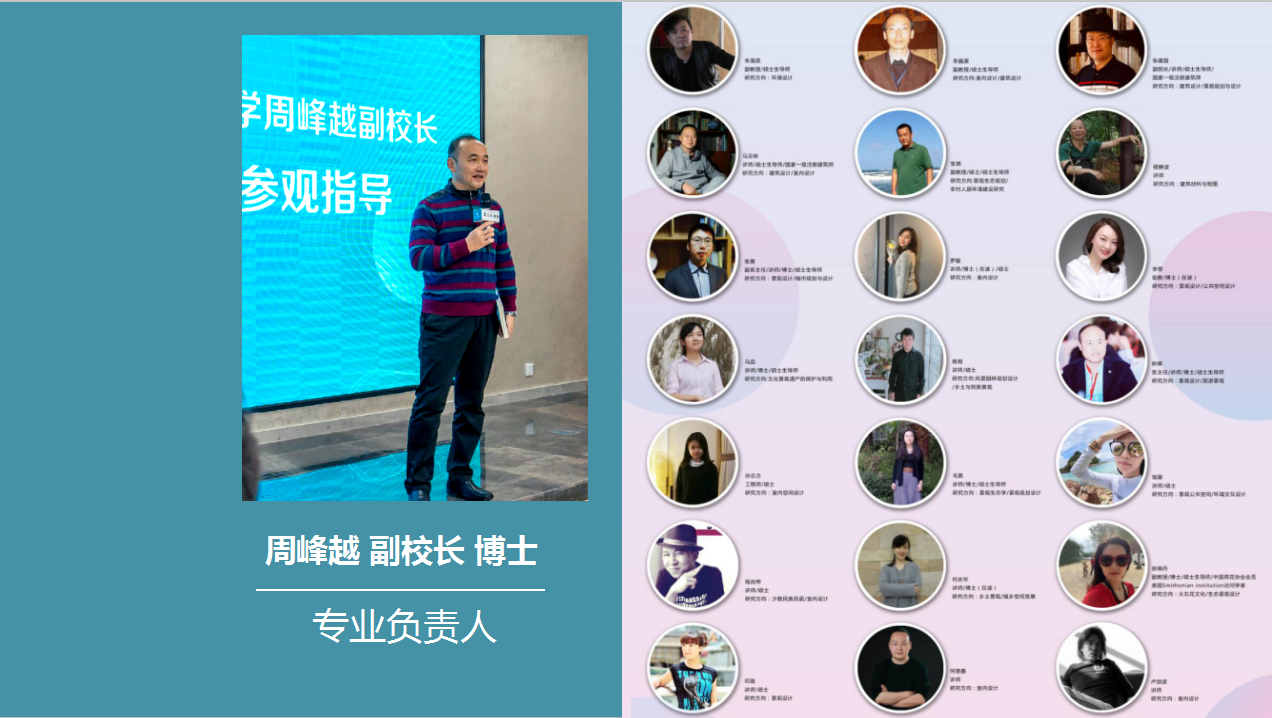 专业负责人周峰越、副校长、博士。有专职教师22人,其中高级职称6人,博士5人,在读博士2人,国家一级注册建筑师2人,云南省青年拔尖人才1名,45岁以下的教师有16人,占72.73%,年龄结构合理。主持或参与国家基金7项、国家质量工程项目3项,国家级教改项目3项,省部级课题5项,出版专著20余部,发表SCI、EI论文13篇,专利50多项,论文100余篇。
