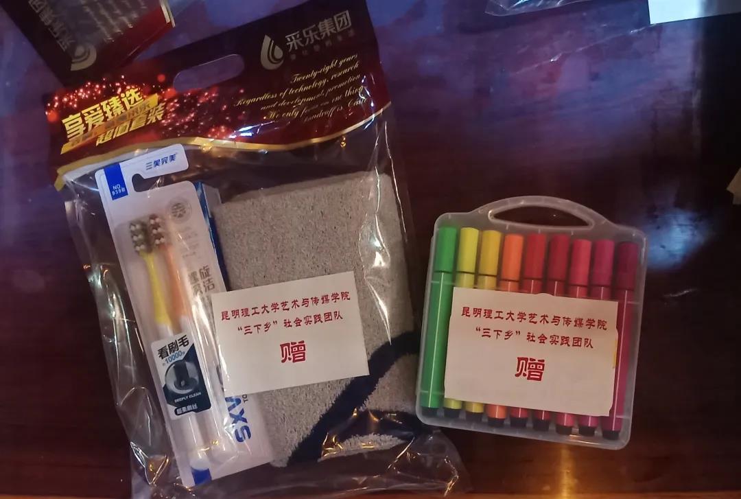 会后,团队成员对为村民们准备的物资进行了分类整理,并为每一份物资贴上了印有团队名称标志的贴纸。