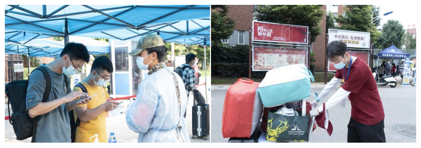研究生迎新工作小组根据细化方案,全体成员统一着装,佩戴党、团徽及校徽,并认真戴好口罩,做好现场消毒消杀工作,树立糖心视频