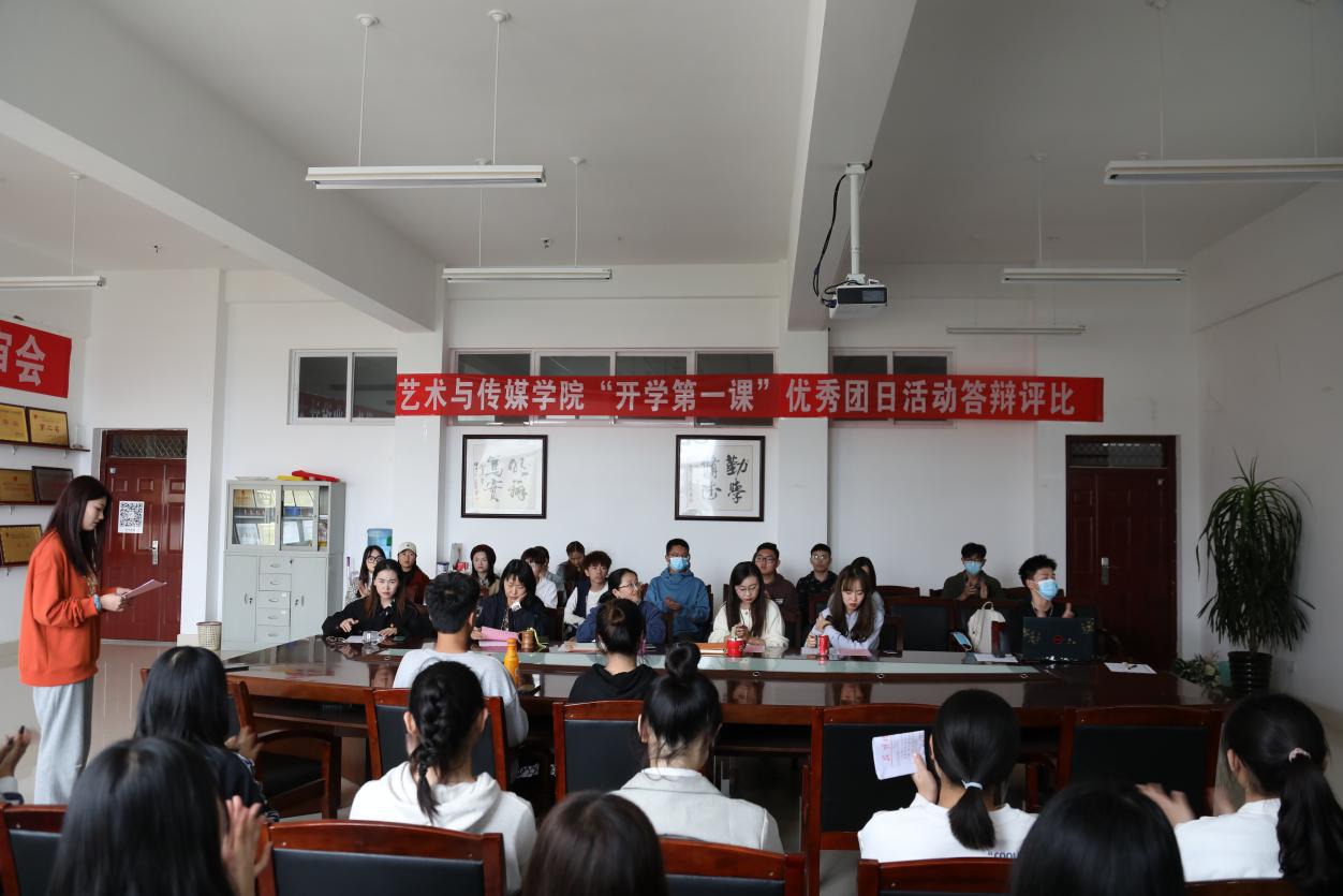 团委在公教楼209室开展了艺传院“开学第一课”主题团日活动答辩会。此次答辩由学院团委书记桂巧玲老师、辅导员李霞老师、刘晓楠老师、李娟老师、张志慧老师担任评委,全院45个团支部组织开展团日活动并参与此次答辩评比。