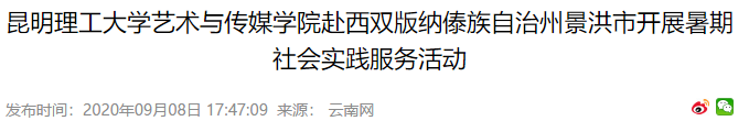 暑期社会实践服务团队赴西双版纳傣族自治州景洪市开展实践调研。团队采用问卷调查、专人访谈及实地考察等方式,围绕边疆民族地区群众媒介素养,关注乡村振兴背景下边疆少数民族地区在新时代发展中利用传播媒介推动脱贫攻坚、美丽乡村、非遗文化等发展,通过走进校园、实地走访进行实践积累,聚焦媒介素养教育等社会环境,尝试探索当地新媒体新业态发展思路。本次暑期社会实践活动产生了良好的社会效益,人民日报、云南网、春城晚报等8家媒体进行了报道,引起社会广泛关注。