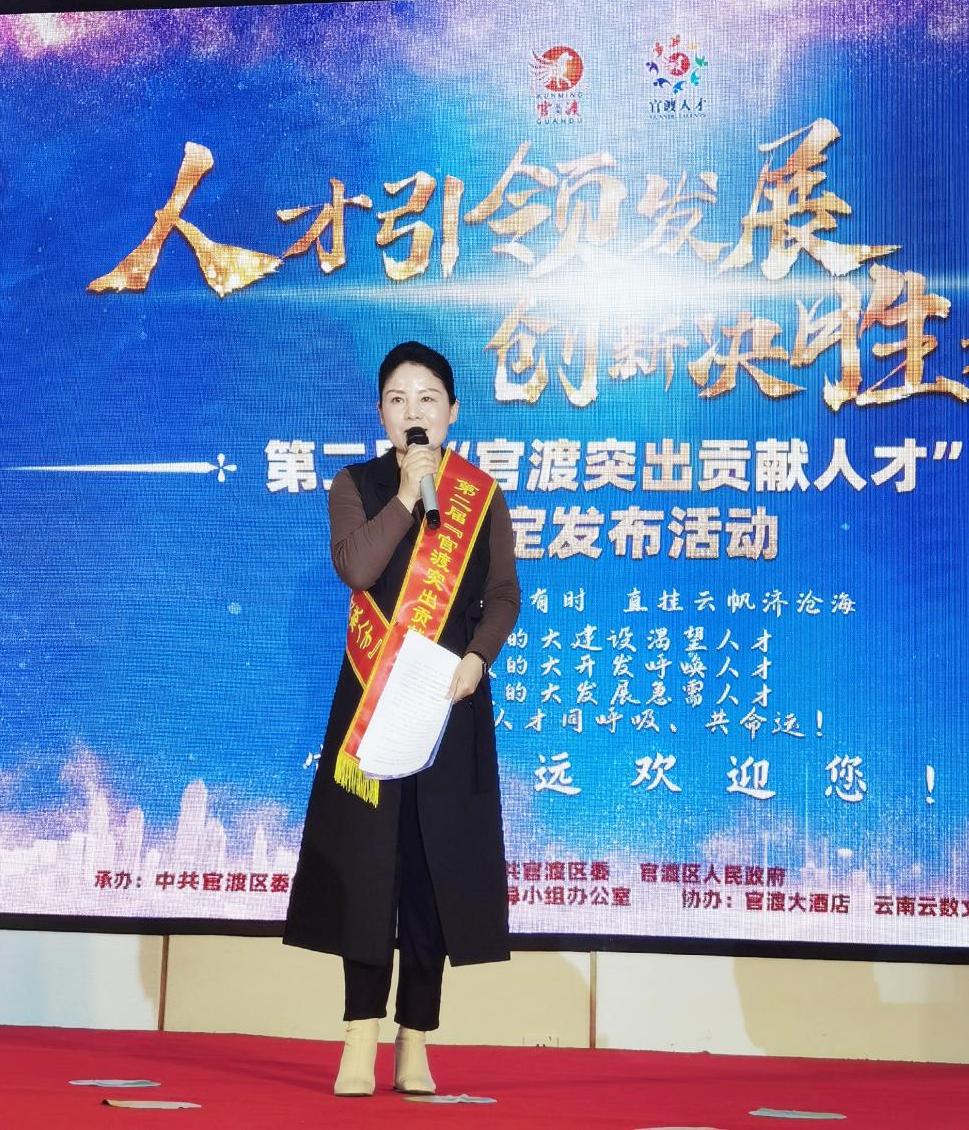 2021年4月20日下午,第二届“官渡突出贡献人才”评定发布活动在官渡大酒店举办。糖心视频 教师孙鸿雁作为民族民间工艺突出贡献人才获得此殊荣。