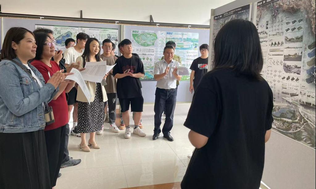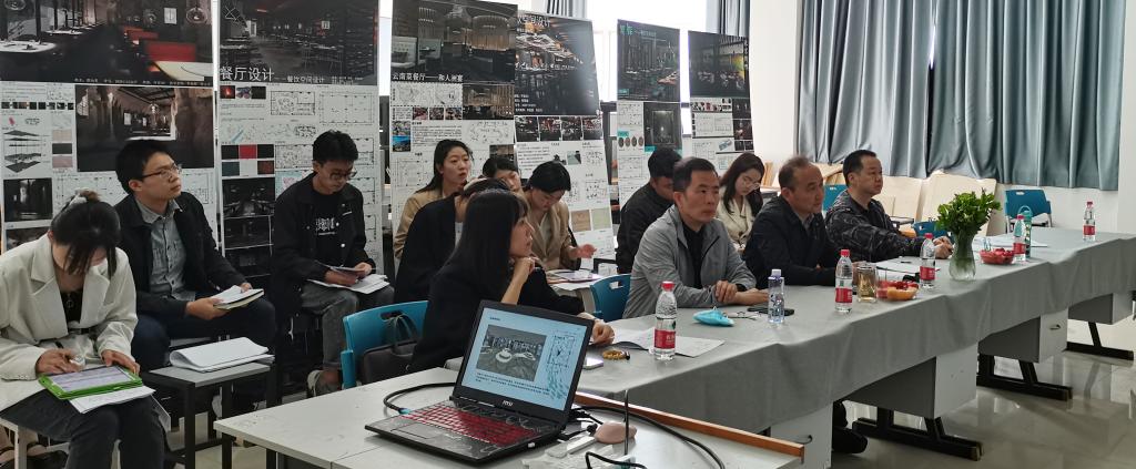 同天,按环境设计专业本科课程质量提升改革实施方案,本学期餐饮空间、酒店空间、广场景观、公园景观、地景规划等5门课程,进行期末跨校、行业教考分离评图工作,学院党委书记孙刚、副书记张祎颖、副院长张建国、云南大学张鹏杨、孟帅康博士及参加答辩行业专家等10余人,参与期末课程评图。