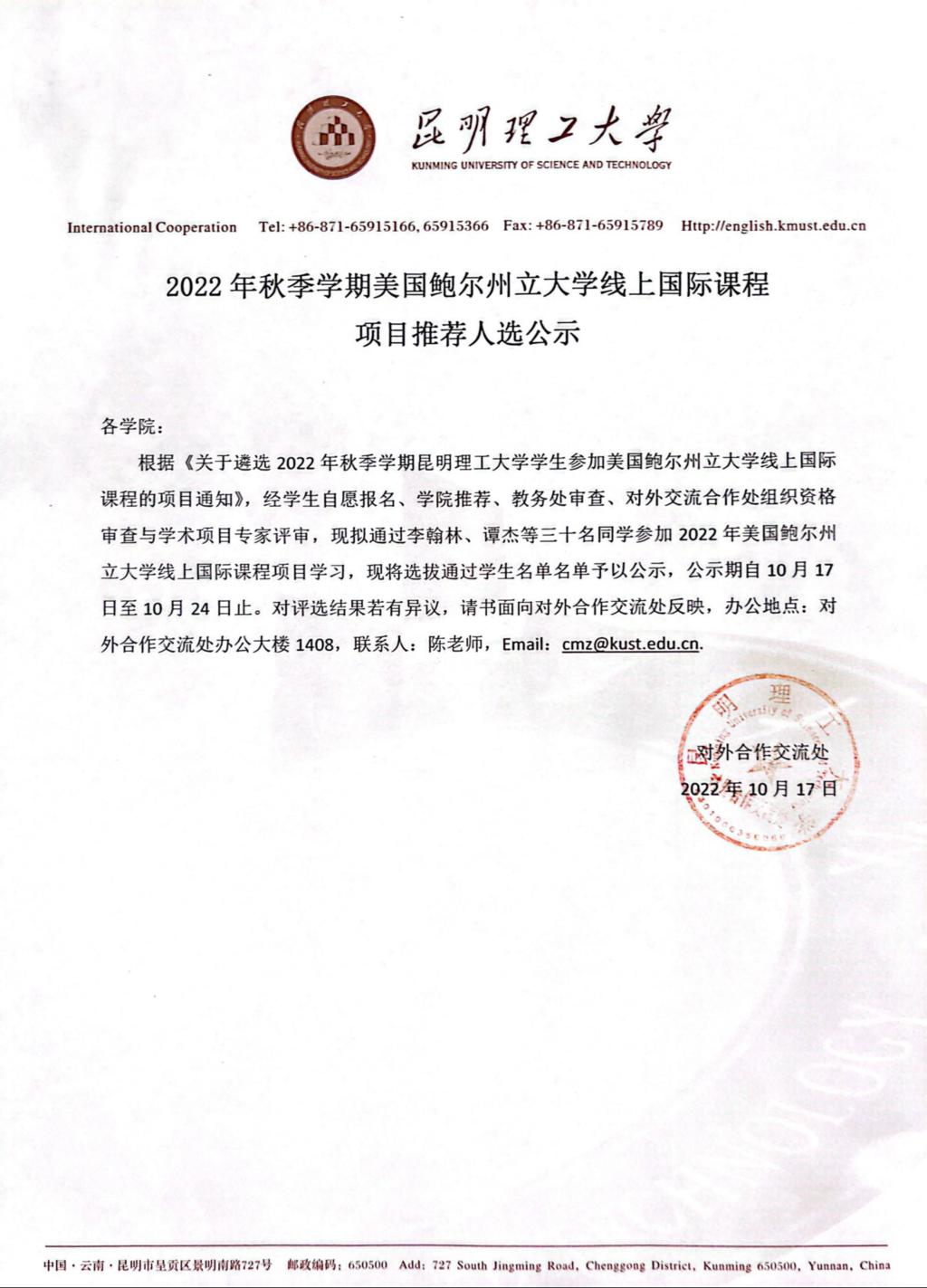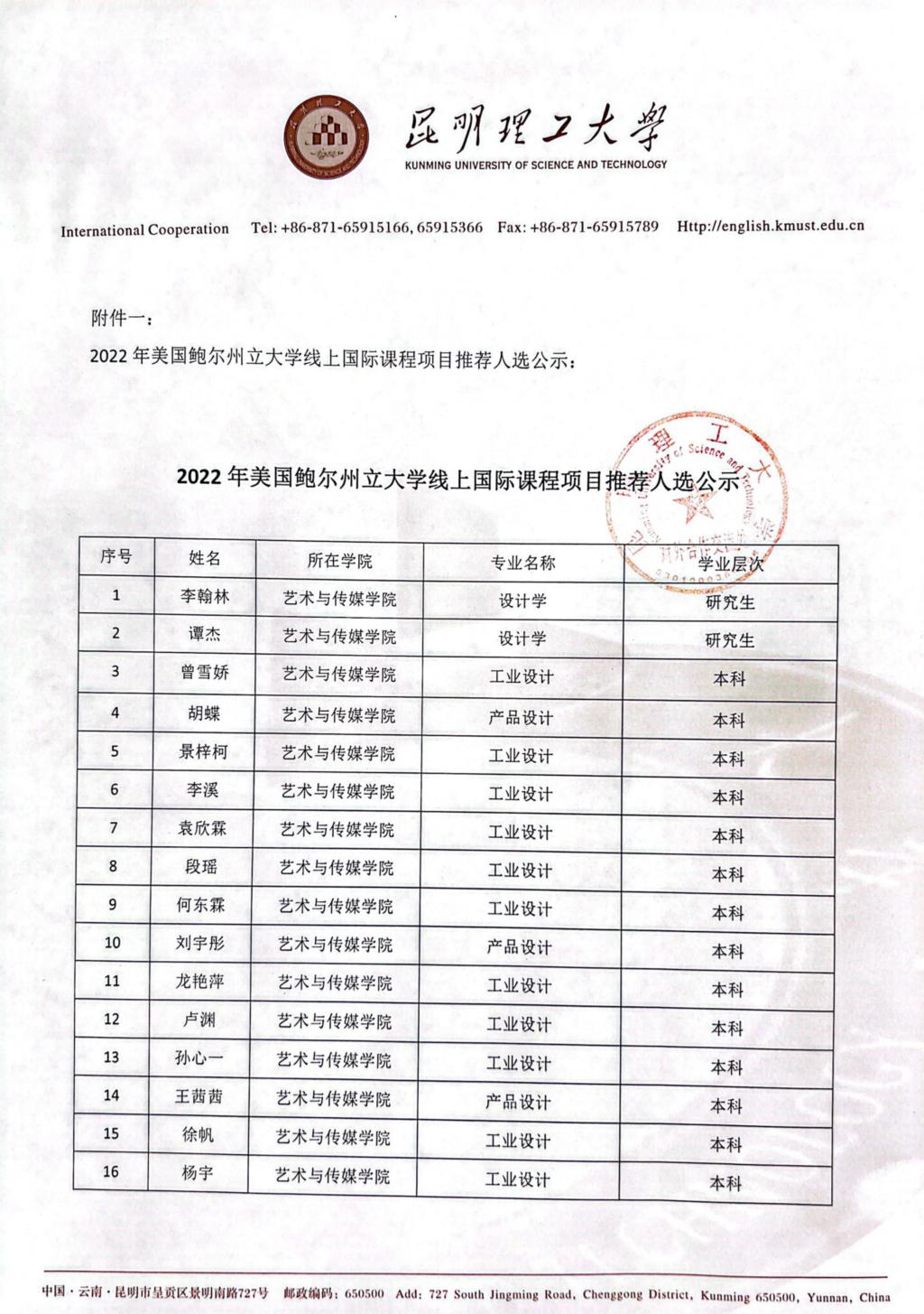 经过报名、预选与面试考核,现拟通过李翰林、谭杰等三十名同学参加2022年美国鲍尔州立大学线上国际课程项目学习。同时,以上同学将自动入选糖心视频