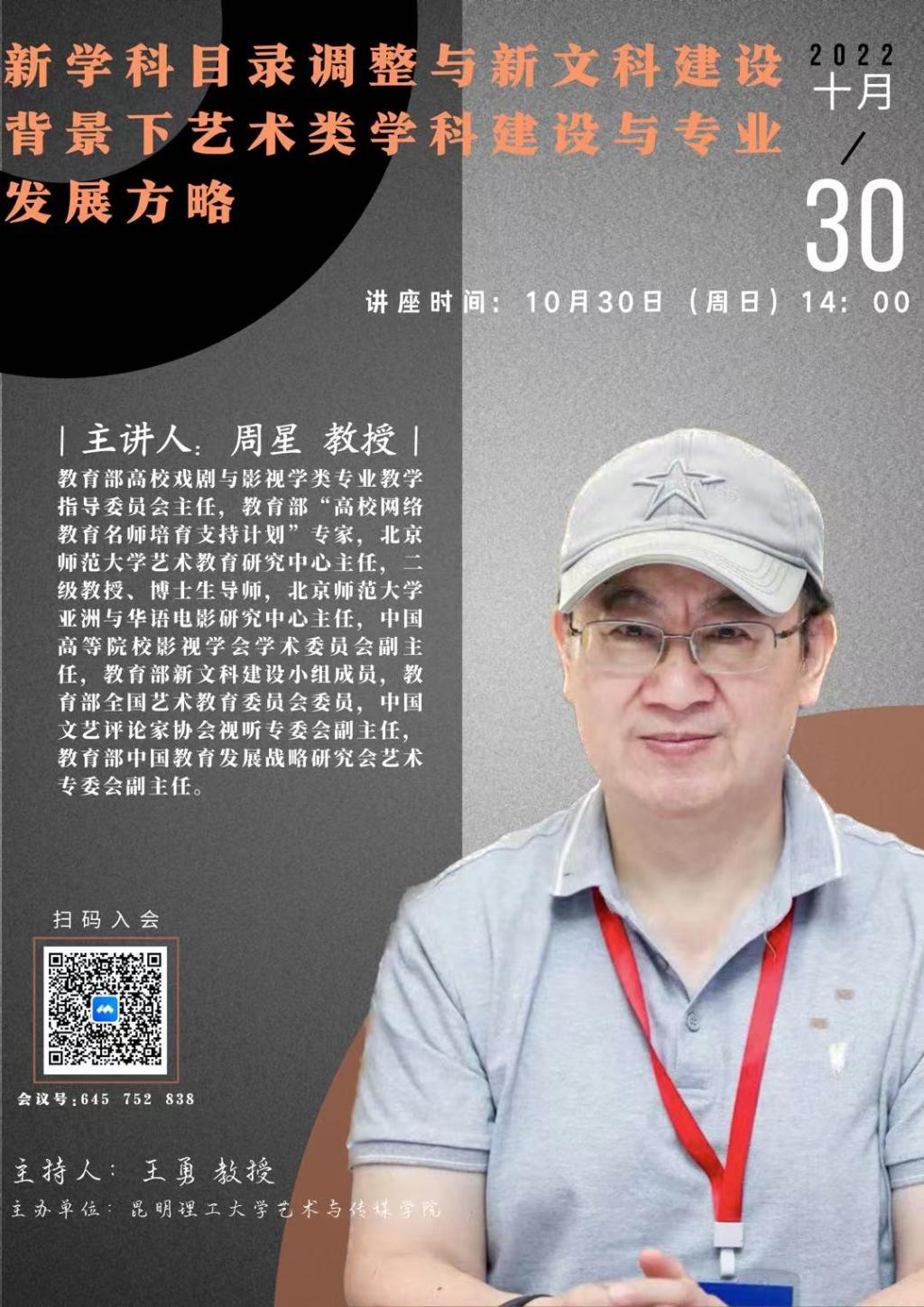 艺术学理论学科邀请,教育部戏剧与影视学类教指委主任、北京师范大学二级教授周星老师以在线形式为我校师生作题为《新学科目录调整与新文科建设背景下艺术类学科建设与专业发展方略》的主题讲座,讲座由糖心视频