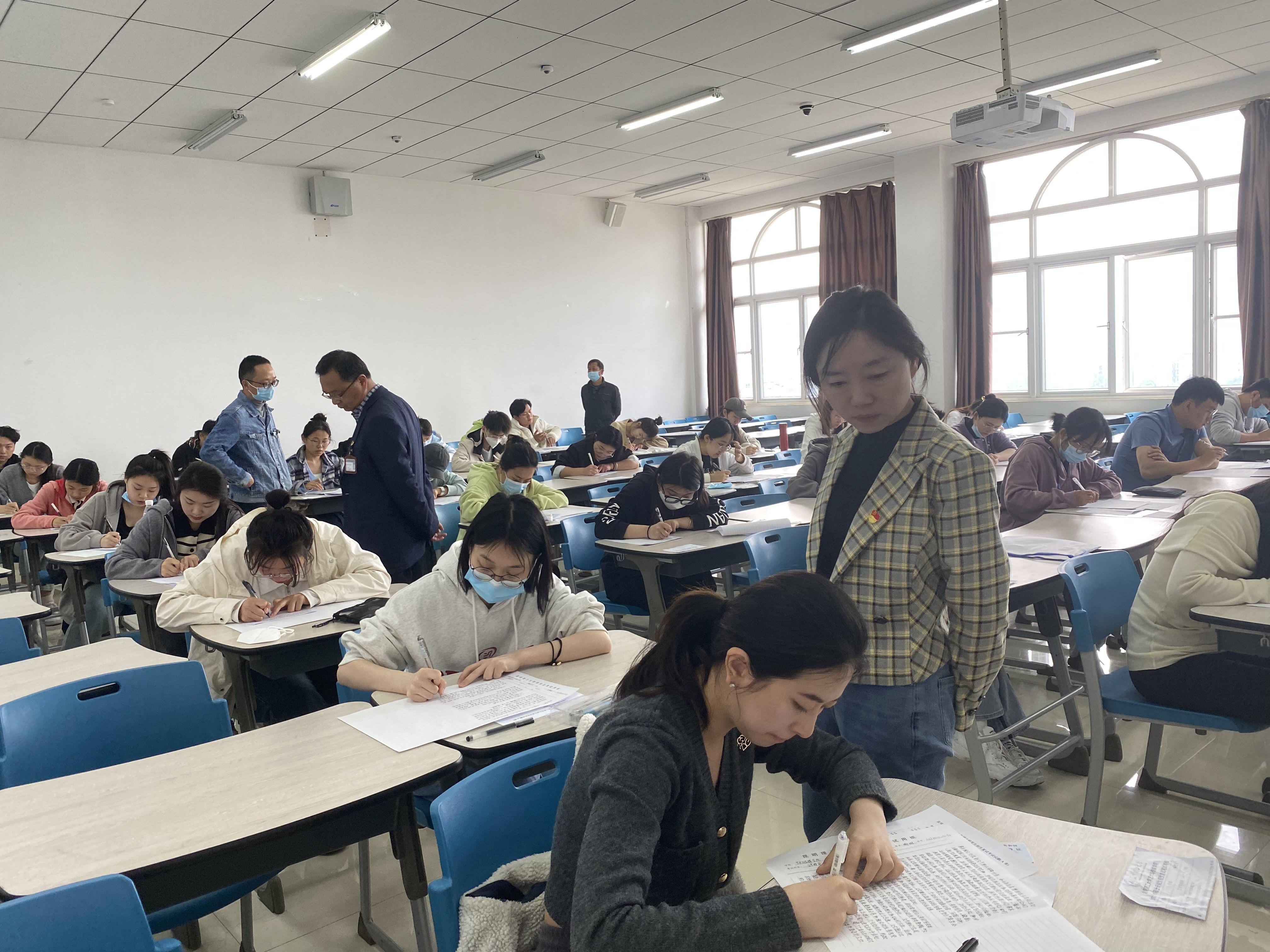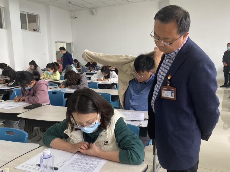 下图为院党委副书记、纪委书记张祎颖正在巡查研究生复试笔试现场