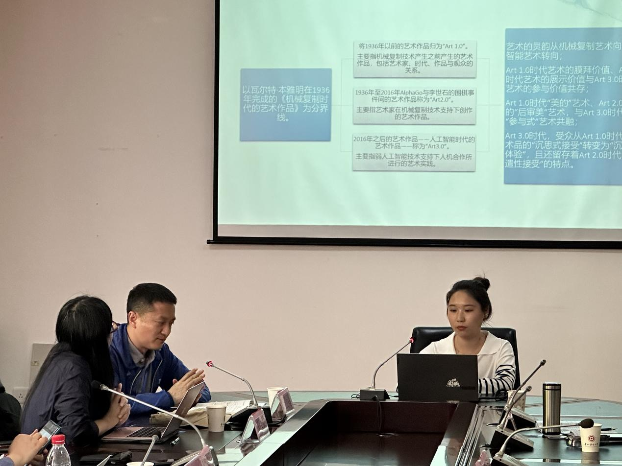 巴胜超教授协同艺术学理论专业李海雪同学就大会主题进行了发言汇报。汇报内容主要围绕《灵韵的诞生:人工智能诗歌阅读、评论与写作的实验民族志》展开,以人类历史上首部人工智能灵思诗集《阳光失了玻璃窗》所引发的媒介景观为个案,从文学人类学的角度,对人工智能时代的诗歌书写进行探讨。通过对阅读机器人诗作的疑问、想象和体验来思考人类将迈入后人类时代,艺术3.0时代的灵韵的诞生的指向性,或者这将也成为人机合作的新可能。