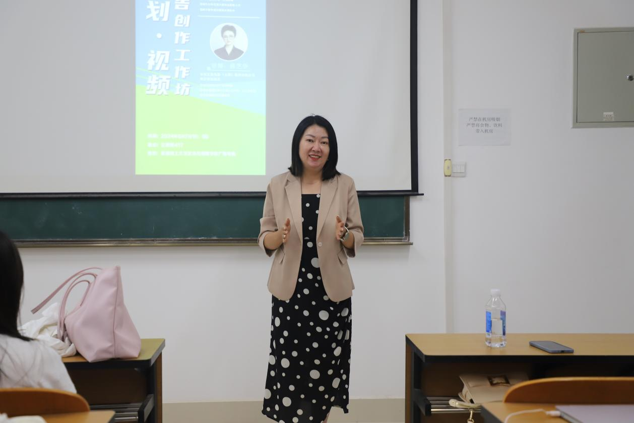 学生做主题为“职场的秘密武器”的就业讲座,广播电视、广告学、传播学等专业学生参加活动,讲座由李怀苍老师主持。