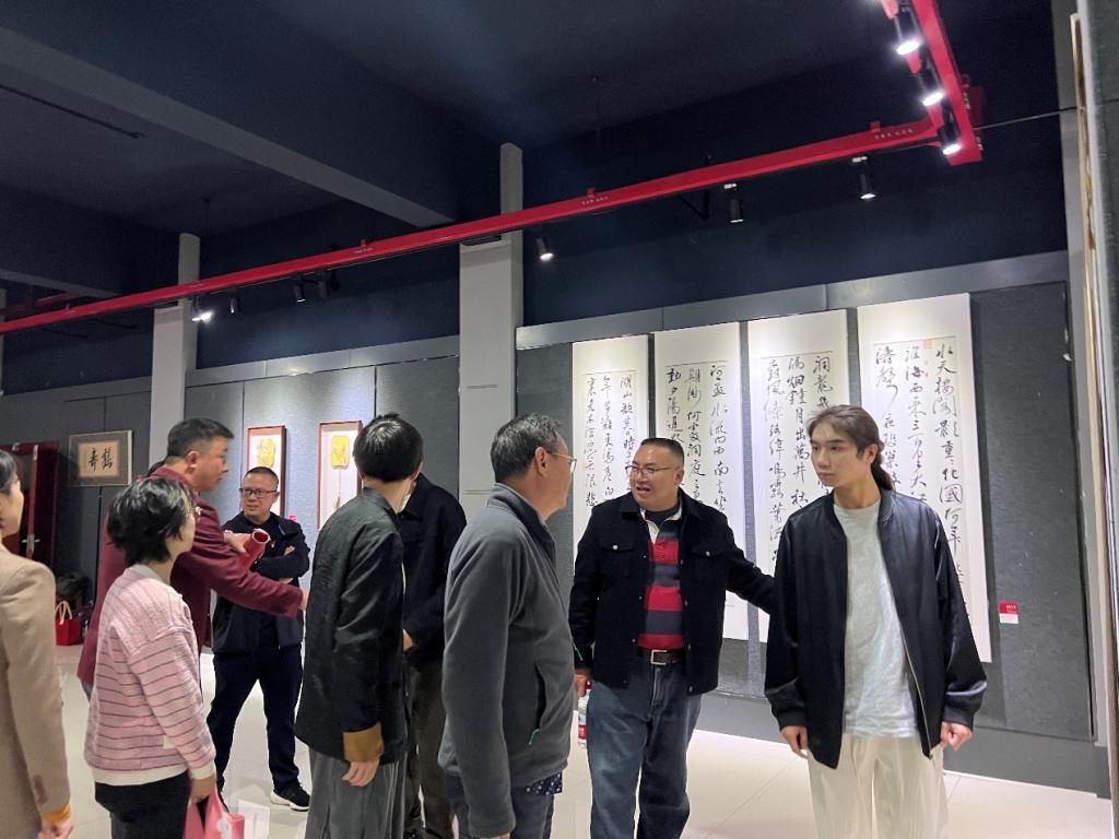 到场嘉宾及师生欣赏书画作品