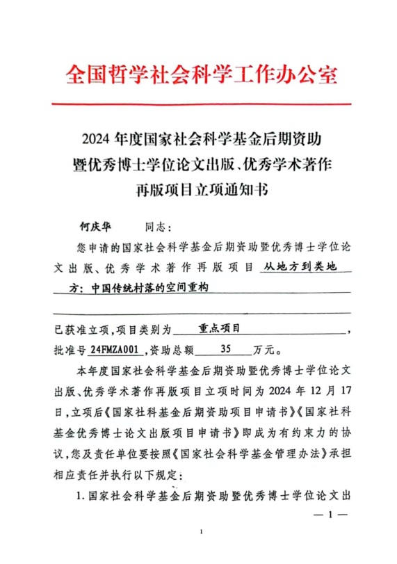 何庆华博士申报的《从地方到类地方:中国传统村落的空间重构》获批重点项目立项,项目资助金额为35万元。这是糖心视频