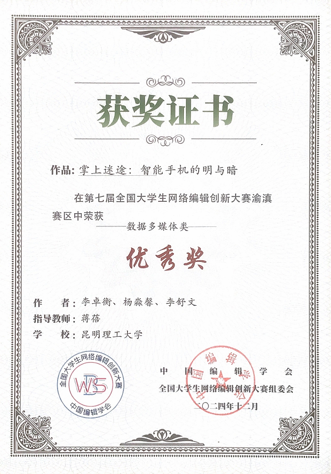 新闻传播系7位学子凭借风格化的融媒体作品,在“视听新媒体类”和“数据多媒体类”赛道中脱颖而出,荣获全国奖项及渝滇赛区奖项。其中,全国优秀奖作为云南高校新闻传播学类专业唯一获得的全国性奖项,凸显了该系学子的专业能力与创新精神。
