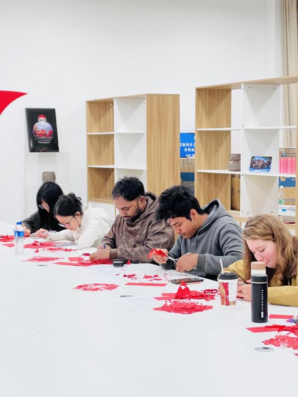 在实践环节,同学们在段云丽大师及指导教师的指导下,亲手尝试云南传统手工艺剪纸制作。大家认真学习技法,专注创作,深刻体会匠人精神,最终每位参与者都完成了属于自己的非遗作品。活动过程中,国际留学生积极交流感受,纷纷表示通过亲手制作,不仅拉近了与中国非遗文化的距离,更真切感受到了中华优秀传统文化的独特魅力。