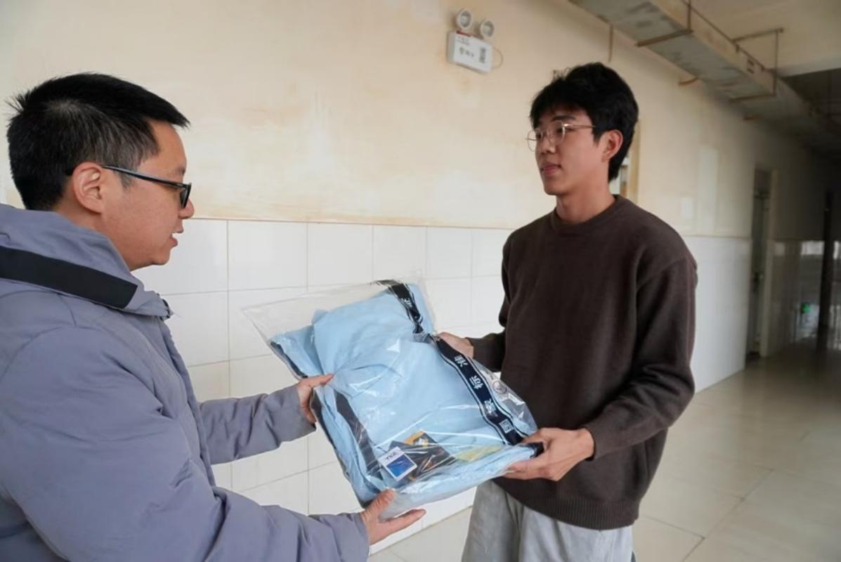 学院始终把学生的冷暖放在心上,活动筹备阶段,老师们细心统计每位同学的尺码信息,反复筛选比对,最终选定了兼具保暖性与时尚感的冲锋衣 —— 既贴合年轻学子的审美需求,又能为大家抵御冬日严寒,每一件衣物都承载着学院的用心与牵挂。