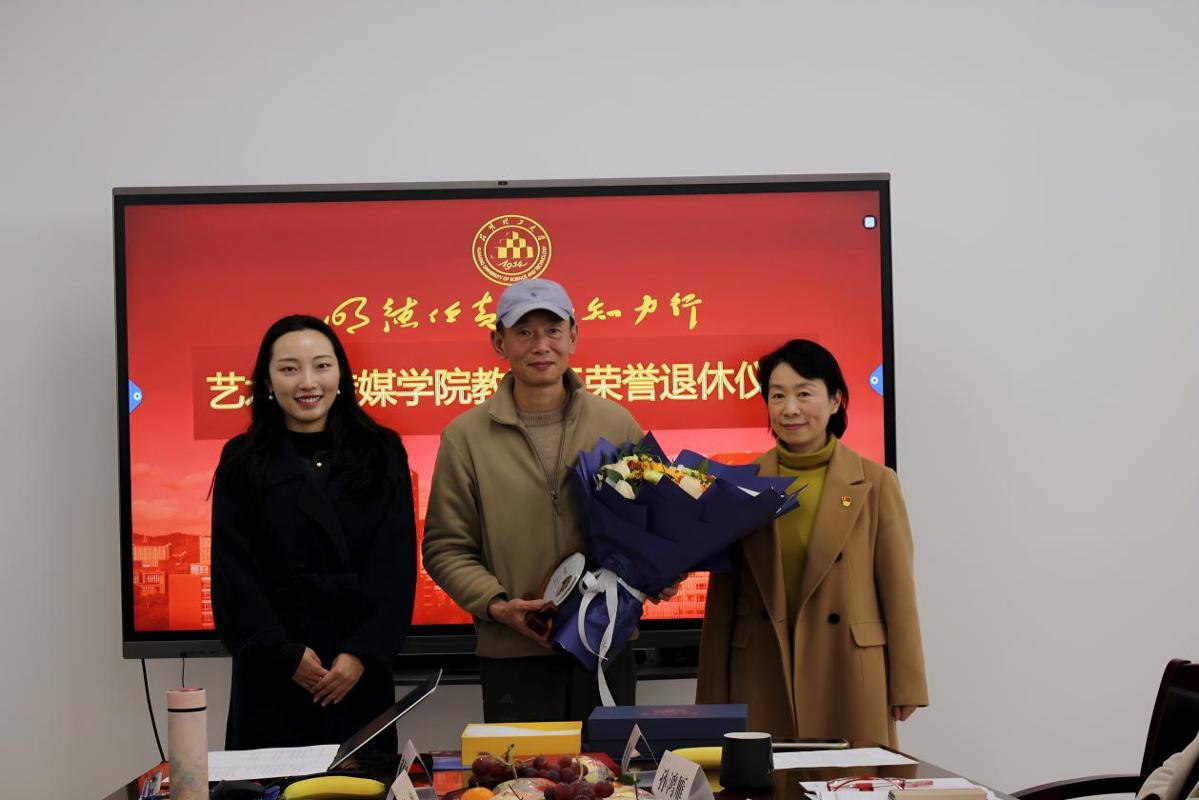 学院主持工作副院长崔颖代表学院致辞,“三十七年弦歌不辍,三十七年桃李芬芳。胡俊老师用大半辈子的坚守,诠释了何为‘躬耕教坛,强国有我’。” 向胡俊老师的辛勤付出致以诚挚感谢与崇高敬意;在职教师代表官泓分享了与胡俊老师共事的点滴过往,追忆其治学态度与育人情怀;胡俊老师回顾了 37 年教育生涯,表达了对学校与学院的感恩之情。随后,学院党委书记李云燕与新进教师代表耿莉共同为胡俊老师敬献鲜花、赠送荣休纪念品,传递全院师生的敬意与祝福。新进教师代表耿莉作表态发言,表达了传承师道、接续奋斗的决心。