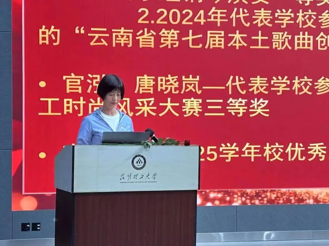 工会委员李雪枫老师 宣读学院在工会工作方面获得的表彰名单。